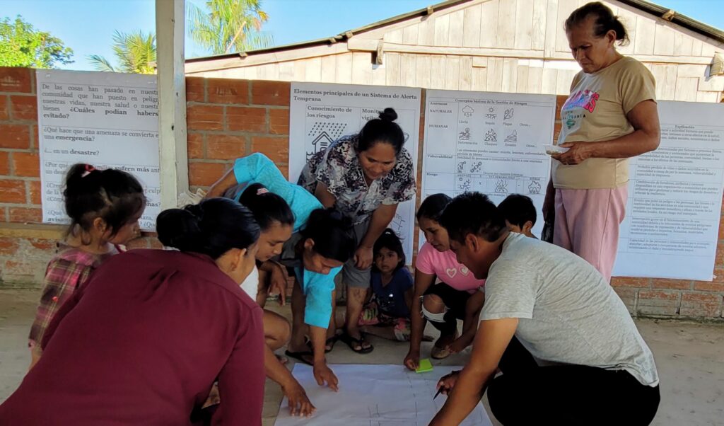 In Tacana Indigenous communities in Bolivia, women are leading the way on strengthening resilience to floods and wildfires through the “Epuna ebuetsuji ecuana” (Women That Teach) initiative. Supported by Practical Action, Women That Teach provides a space for women to talk confidently about their understanding of resilience, disaster risk management, and the key roles that they play in disseminating vital information on disaster risk reduction (DRR) and Early Warning Systems (EWS) throughout their territory.