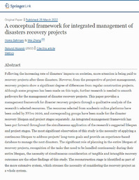 A conceptual framework for integrated management of disasters recovery projects