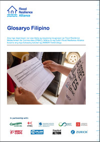 Ang mga depenisyon na nasa ibaba ay mayroong kaugnayan sa Flood Resilience Measurement for Communities (FRMC). Nilikha ito ng Zurich Flood Resilience Alliance kasama ang mga katuwang katulad ng UNISDR Terminology.