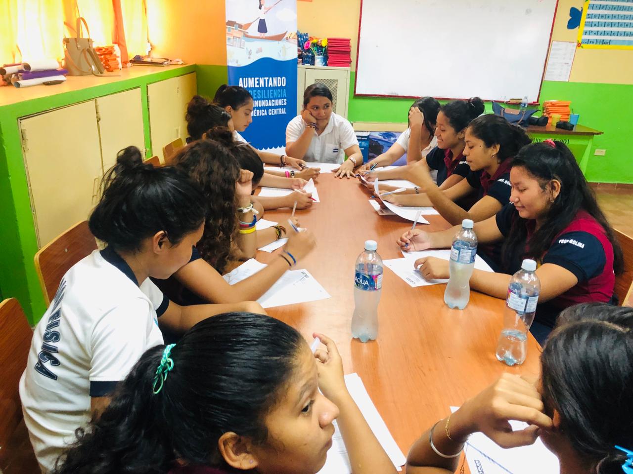 Right - Schoolgirls in El Salvador participate in an exercise looking at flood prevention interventions.