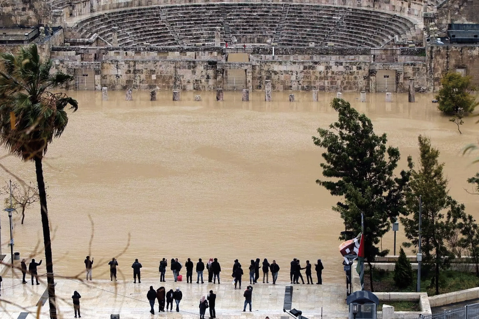Below right - The Roman Theatre in Amman, Jordan, experiencing heavy flooding in December 2021. Photo: Mercy Corps