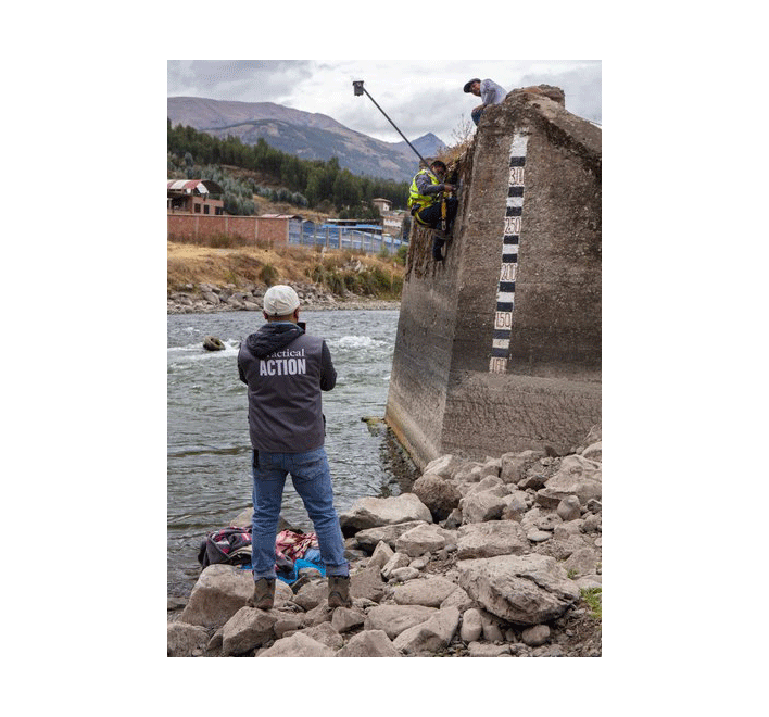Action's team in Peru examines a river monitoring station. Photo: Michael